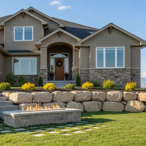 We specialize in one thing: Heavy Rock & Boulder Retaining Walls. We bring in the heavy machinery necessary to place massive, structural boulders that anchor your slope permanently.