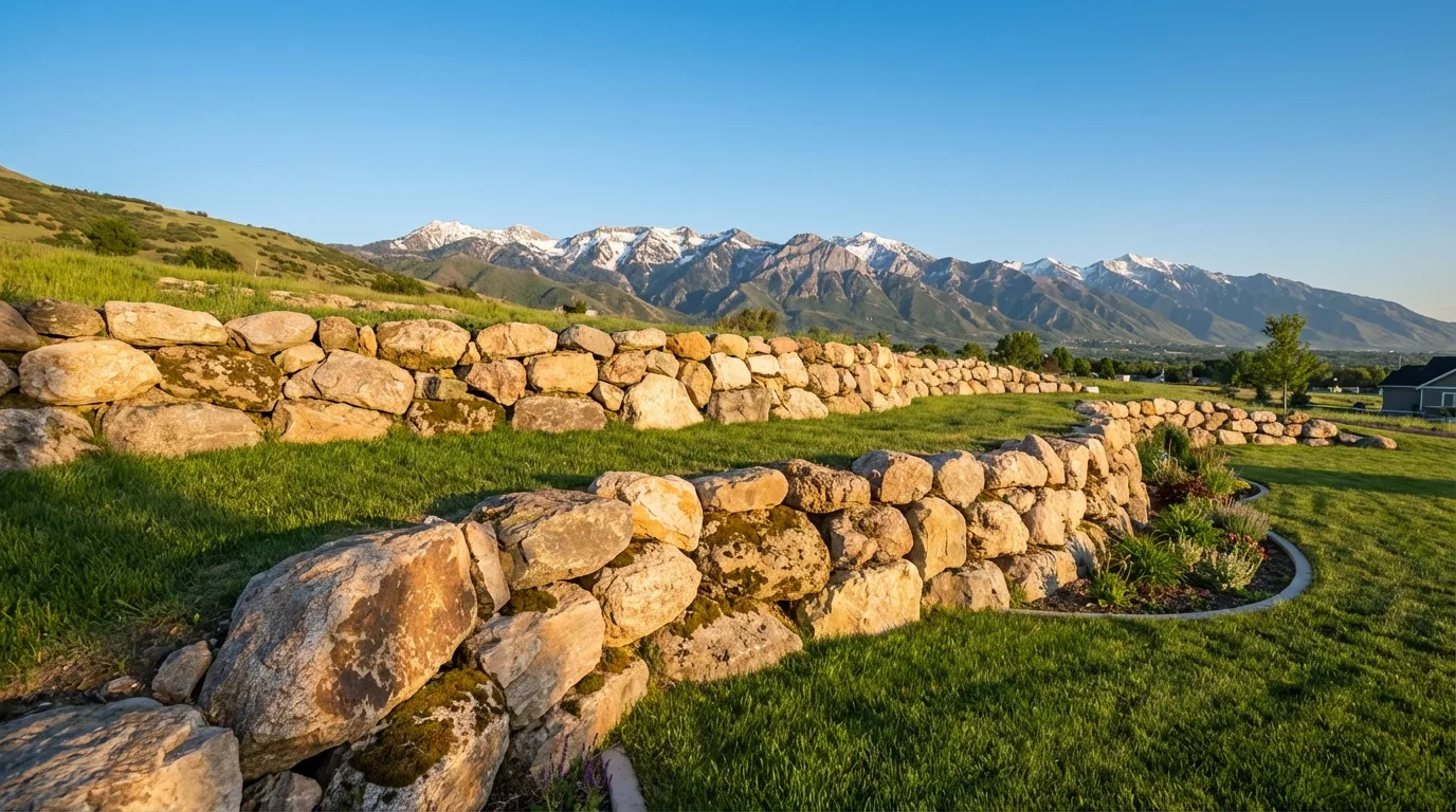 Utah's clay-heavy soil and freeze-thaw cycles demand walls with excellent drainage. Rock boulder walls perform exceptionally well because they allow natural water flow between boulders. Concrete block walls work great with proper French drain and backfill installation. The right choice depends on your specific slope, soil, and aesthetic preferences — we'll recommend the best option during your free estimate.